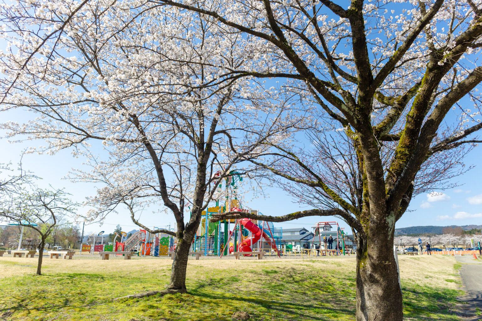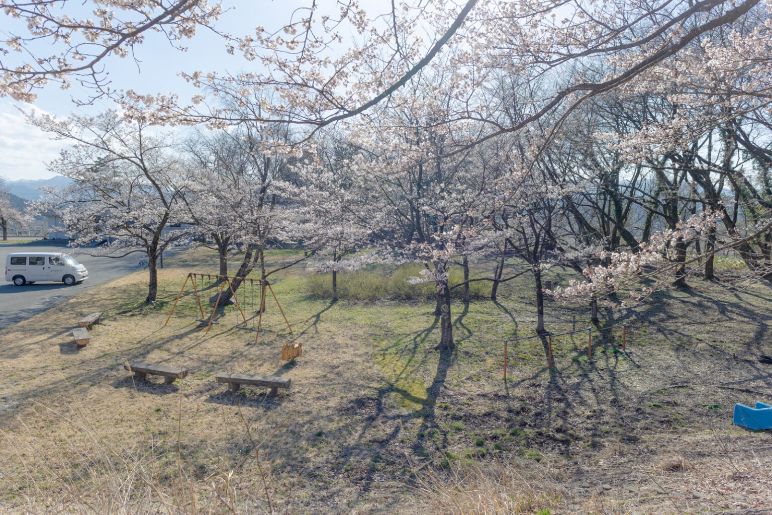 丸山大橋の右岸側にある公園で、春は桜、周辺の遊歩道では豊かな自然も楽しめます。開放感のある景色のなかで、散策やのんびりした春時間を過ごしたい方におすすめです。